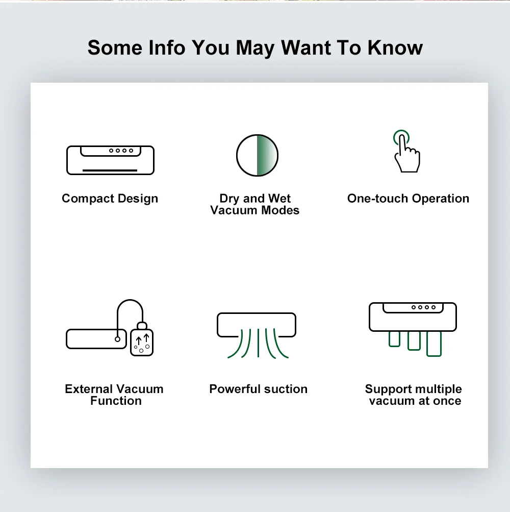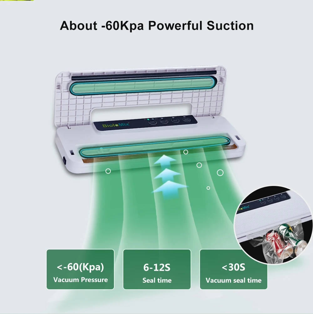 Good Suction : More powerful suction almost removes all the air to maintain the quality and extend the freshness of foods extremely.