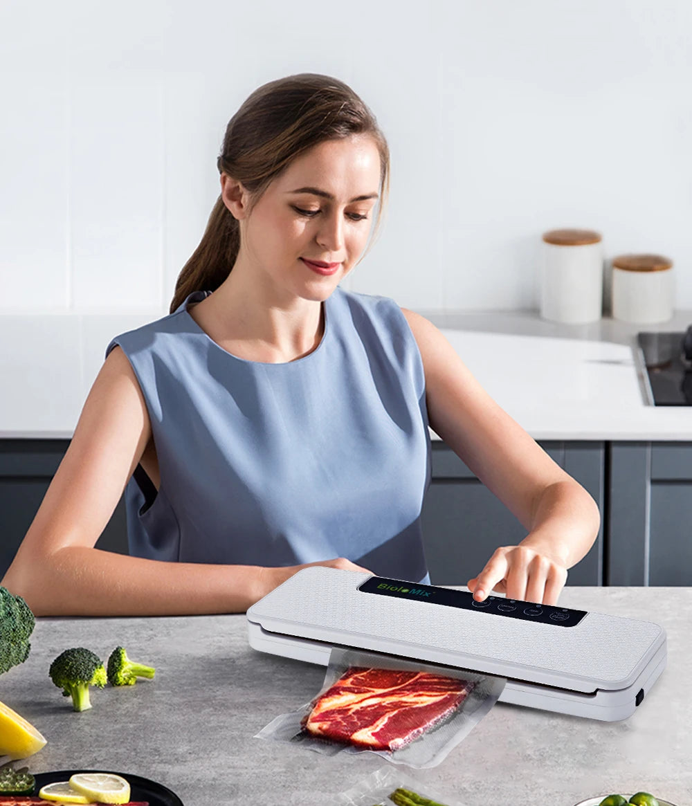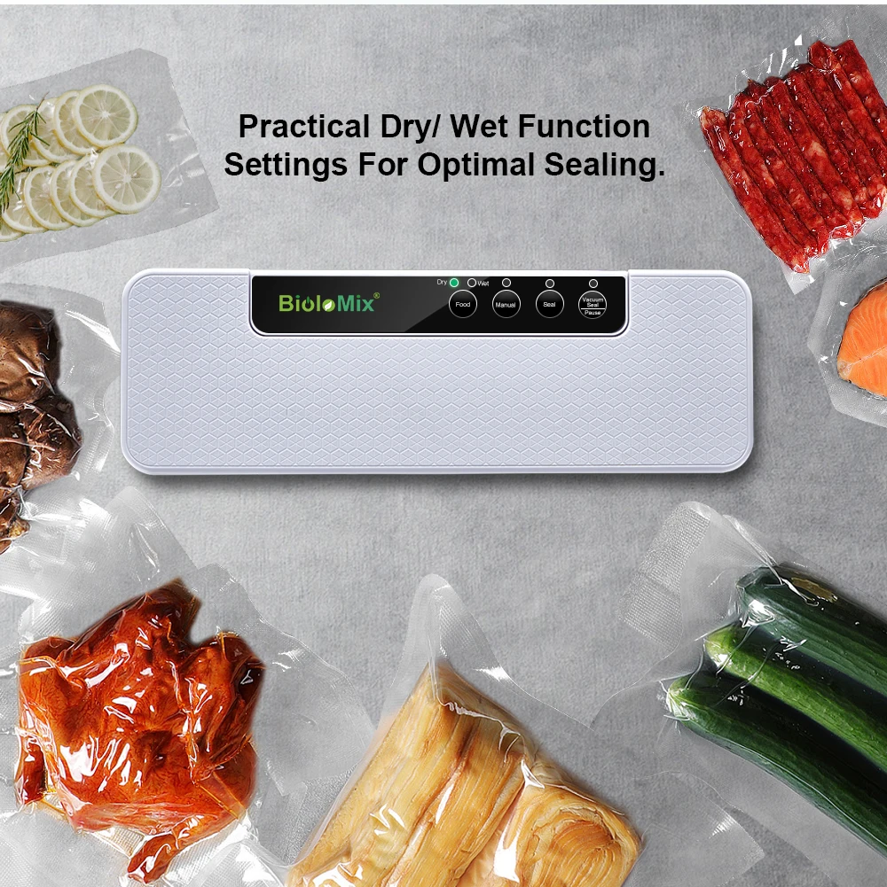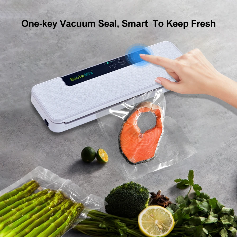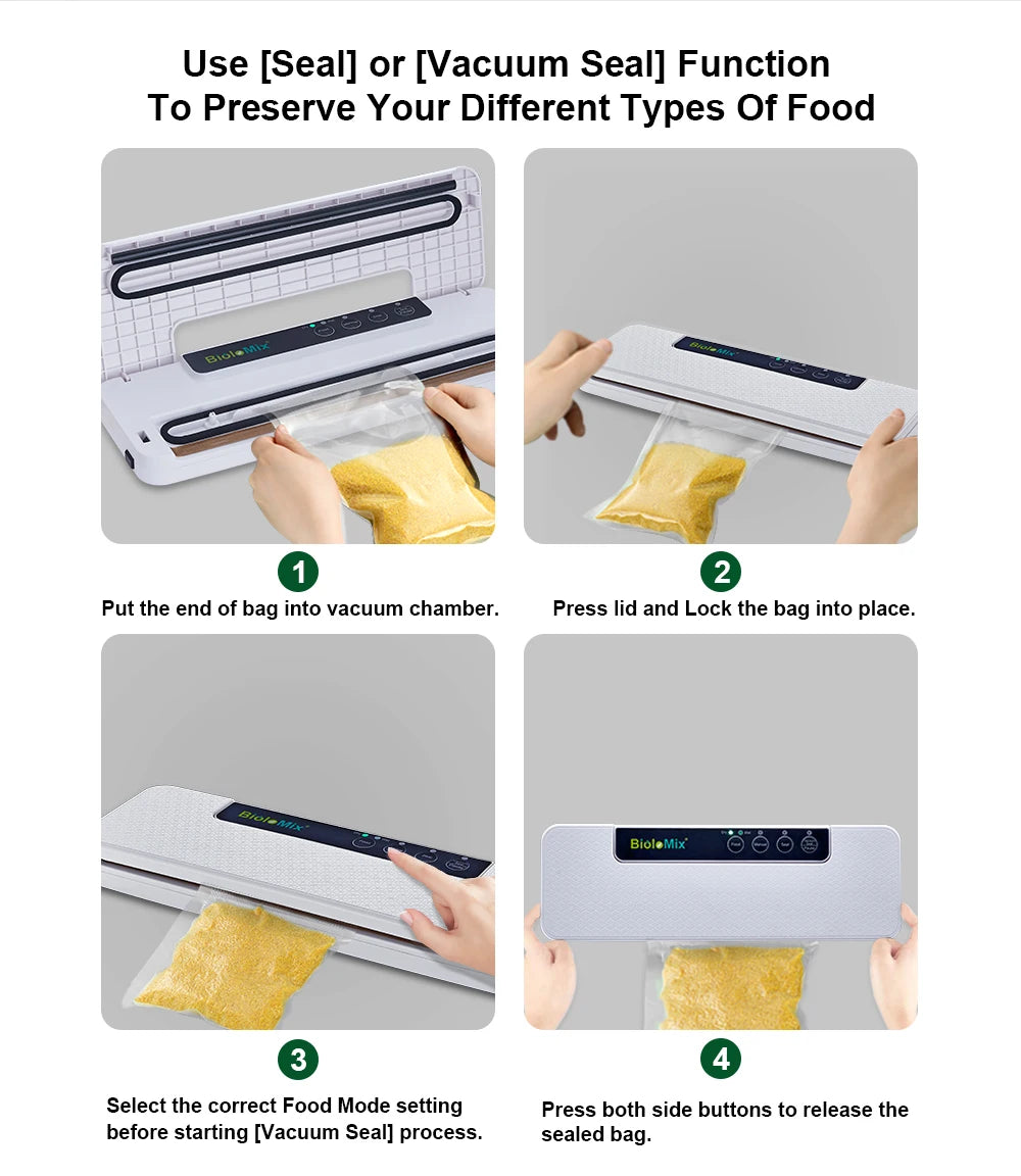 EASY TO USE: Simply put your food of choice into a vacuum sealer bag, insert opened end of bag to BioloMix Vacuum Sealer, then remove air and seal the bag with the press of a single button.