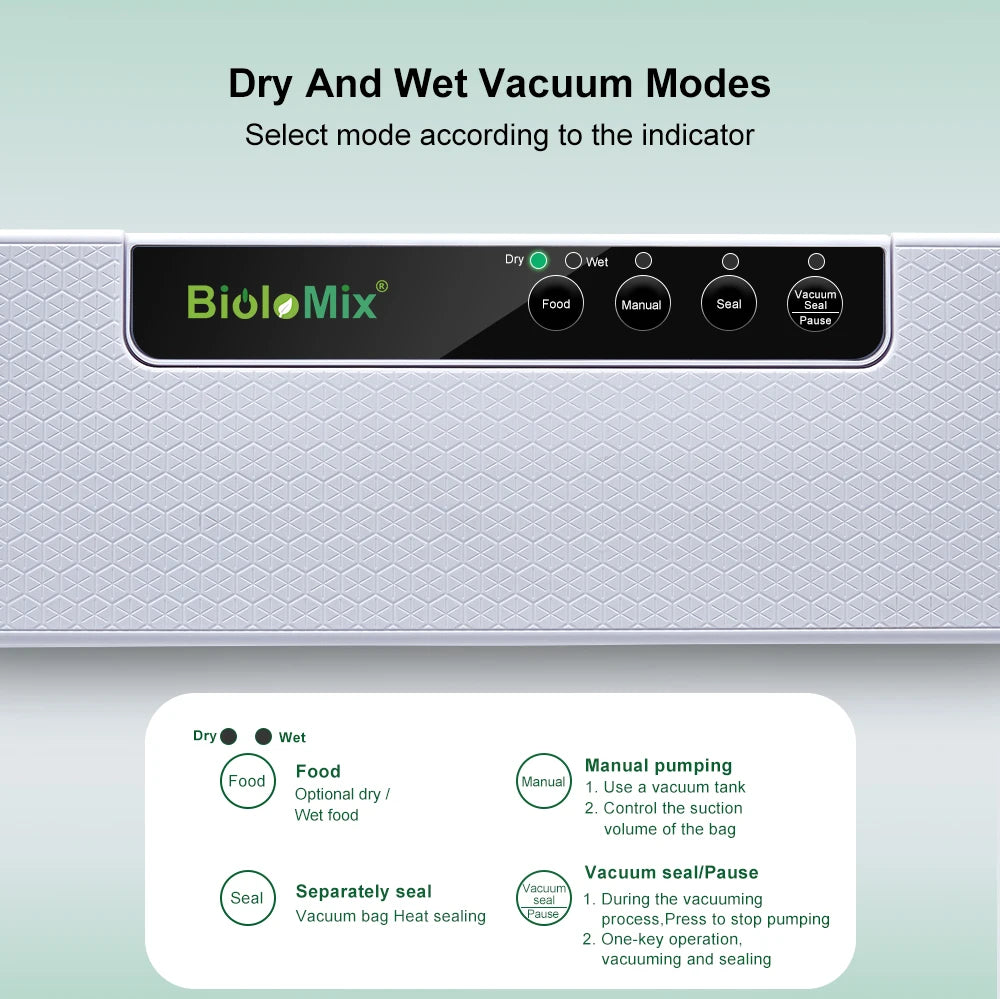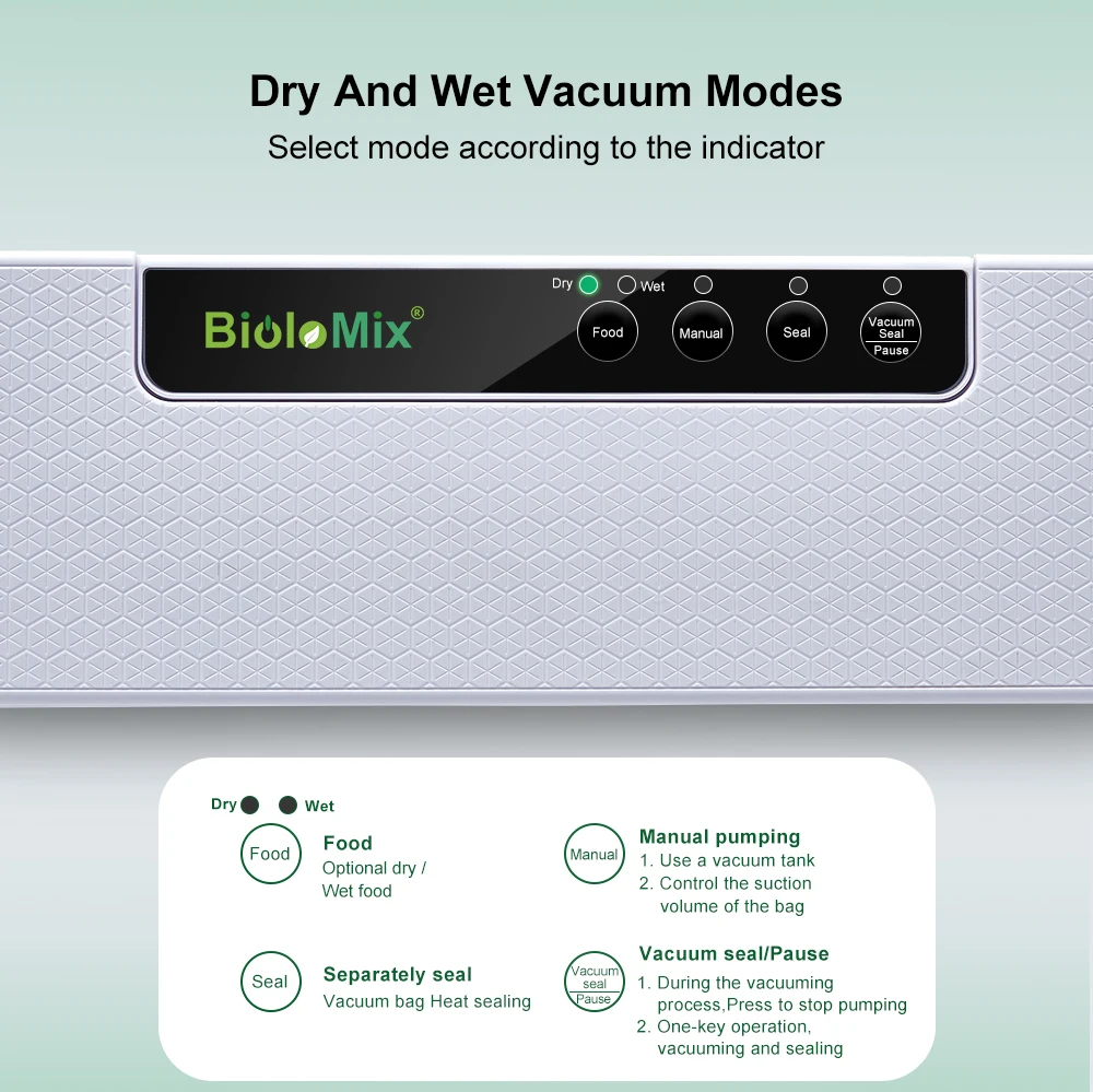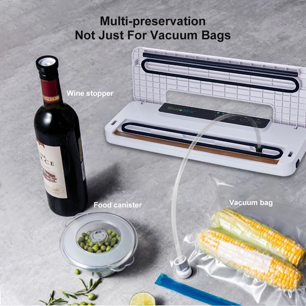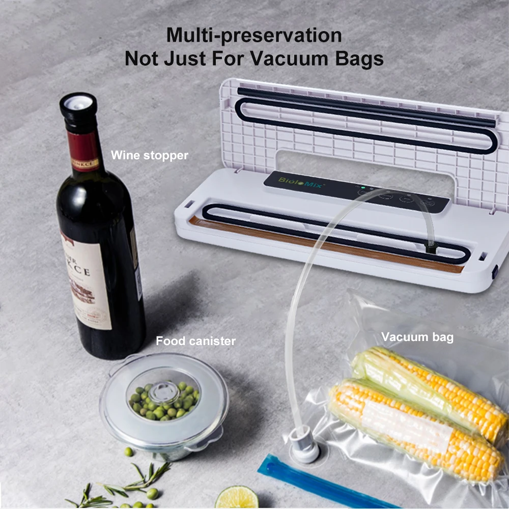 External Pumping Function: BIoloMix Vacuum sealer machine also comes with a pump hose for external vacuuming. Supports vacuuming jars, bottles or containers that have specific exhaust holes on the top.