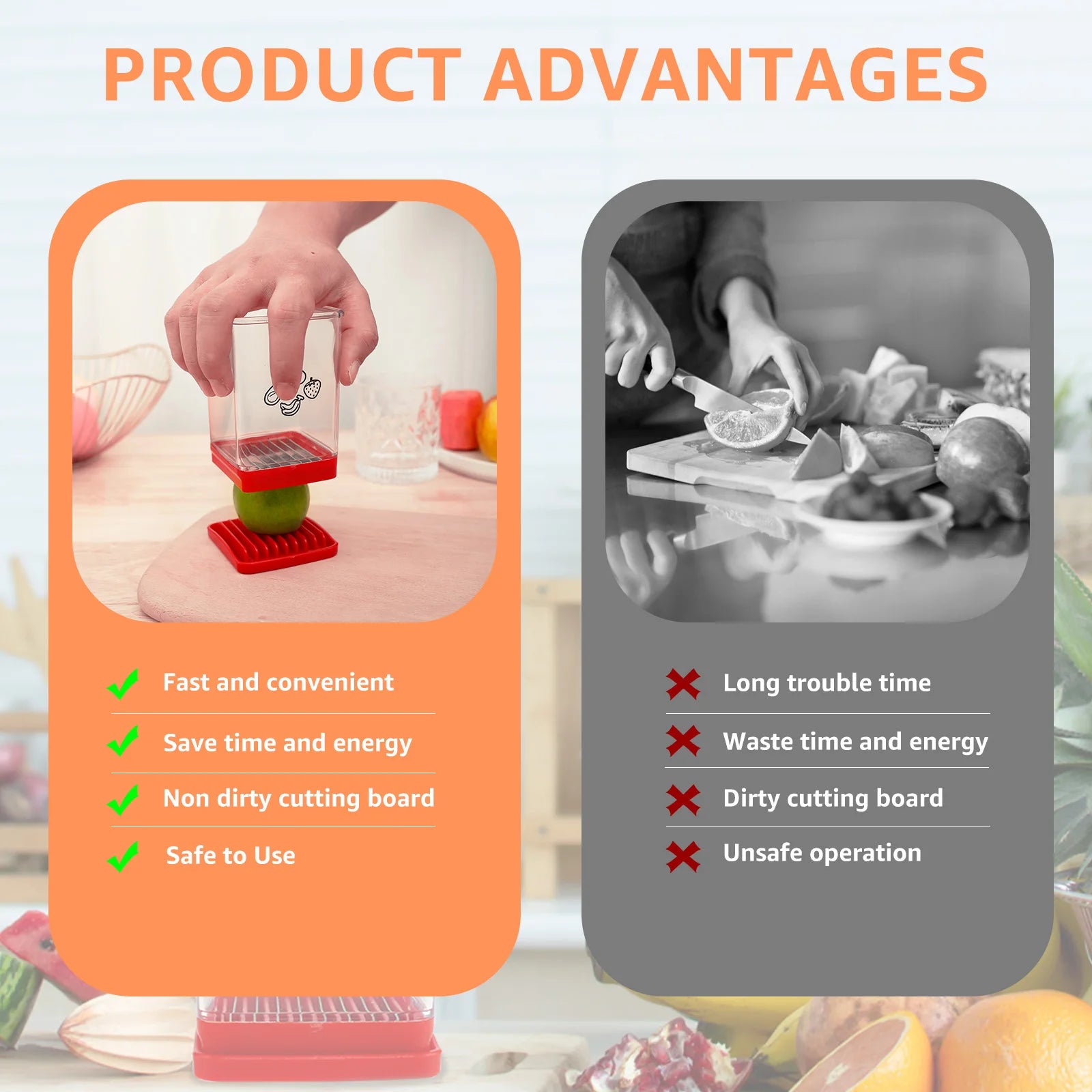 [Wide Application] The cup slicer is suitable for slicing various fruits and vegetables in a fast and easy way. Perfect for slicing apples, strawberries, bananas, mangoes, pineapples, mushrooms, etc. It is a good kitchen tool.