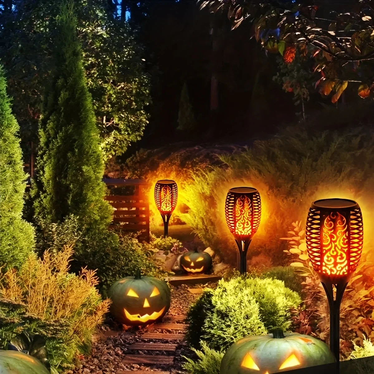 3. Easy Installation: No wiring required, simply install flame solar lights outside like yard, pathways, pool, garden, bench, patio, fence, deck, or outdoor events like party, camping, barbecue, wedding, Christmas, Halloween festival.