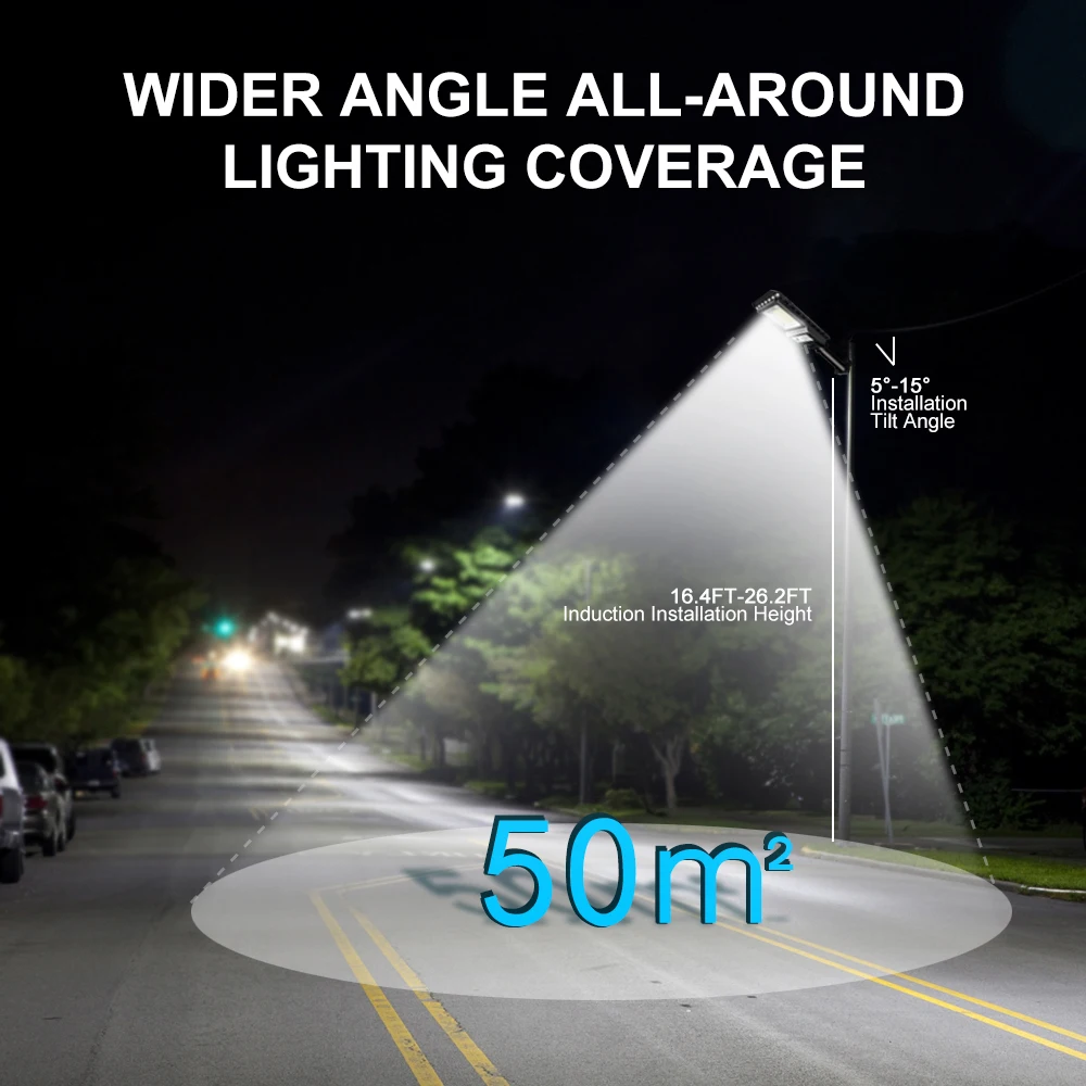 Easy to install, wide application range】 Our solar street lights can be easily installed in various outdoor locations. It can be installed on large utility poles without the need for wiring and can be easily installed. With the accompanying assembly accessories, you can easily install it on walls, utility poles, or any suitable surface. The large lighting area makes these lights very suitable for parking lots, streets, lawns, parks, and other outdoor environments.