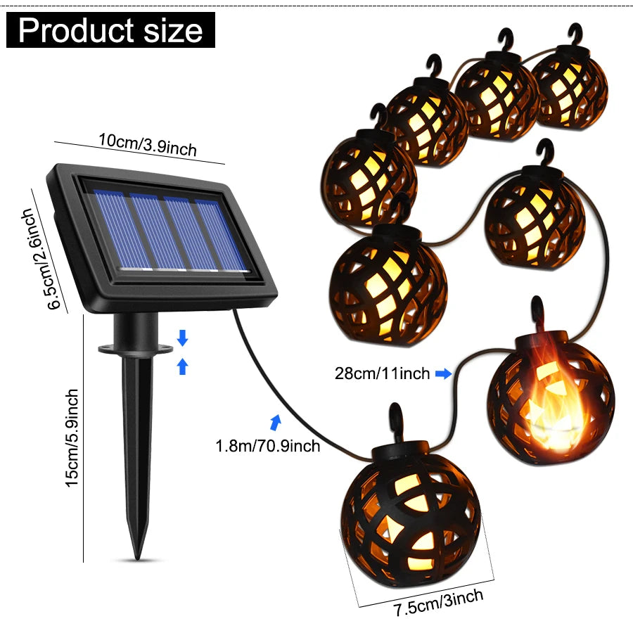 Solar String Lights LED Outdoor Waterproof Flickering Flame Hanging Solar Lantern Lamp with 8 Ball for Patio Garden Yard