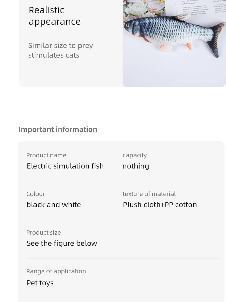 Package includes: 1x Electric simulation fish,1x USB cable