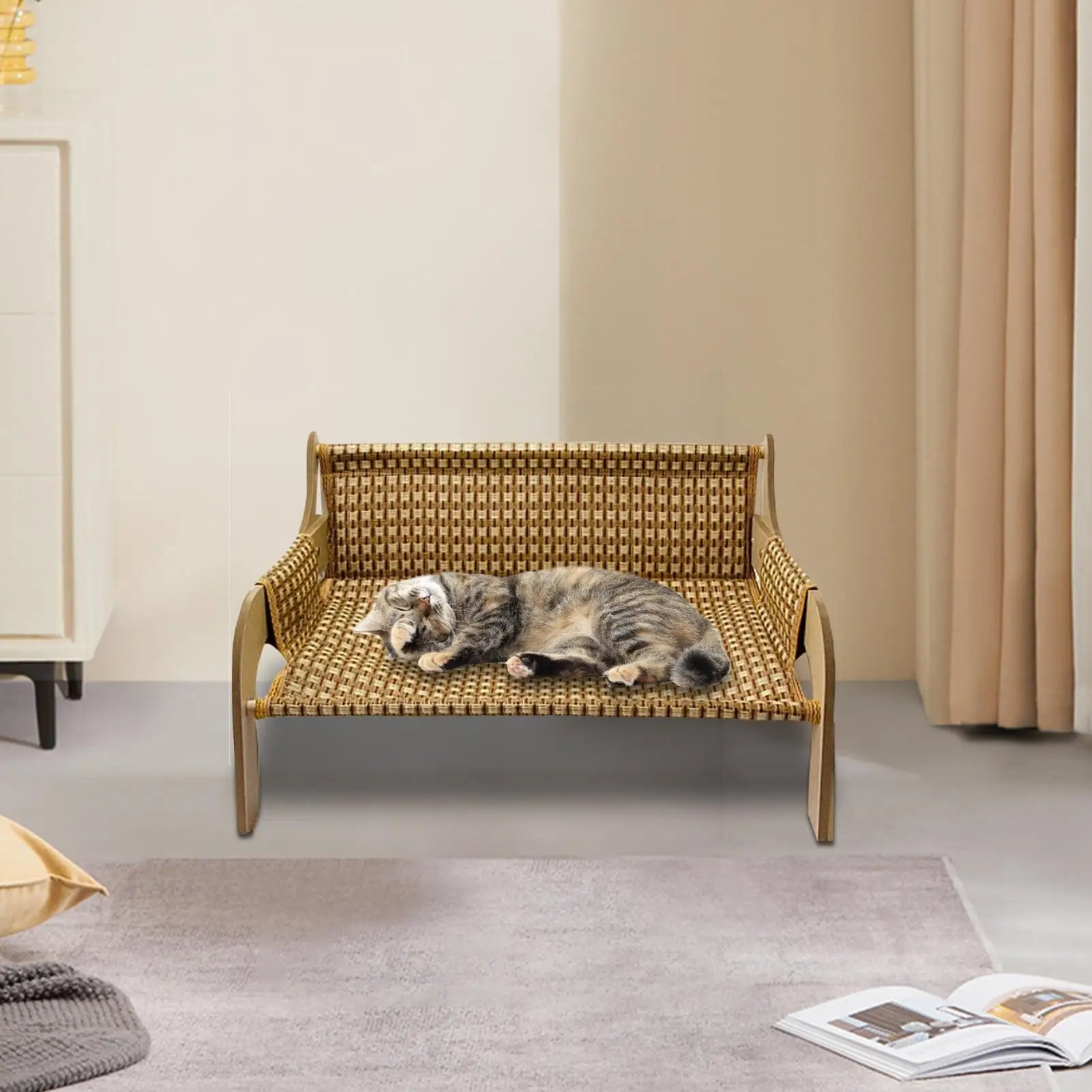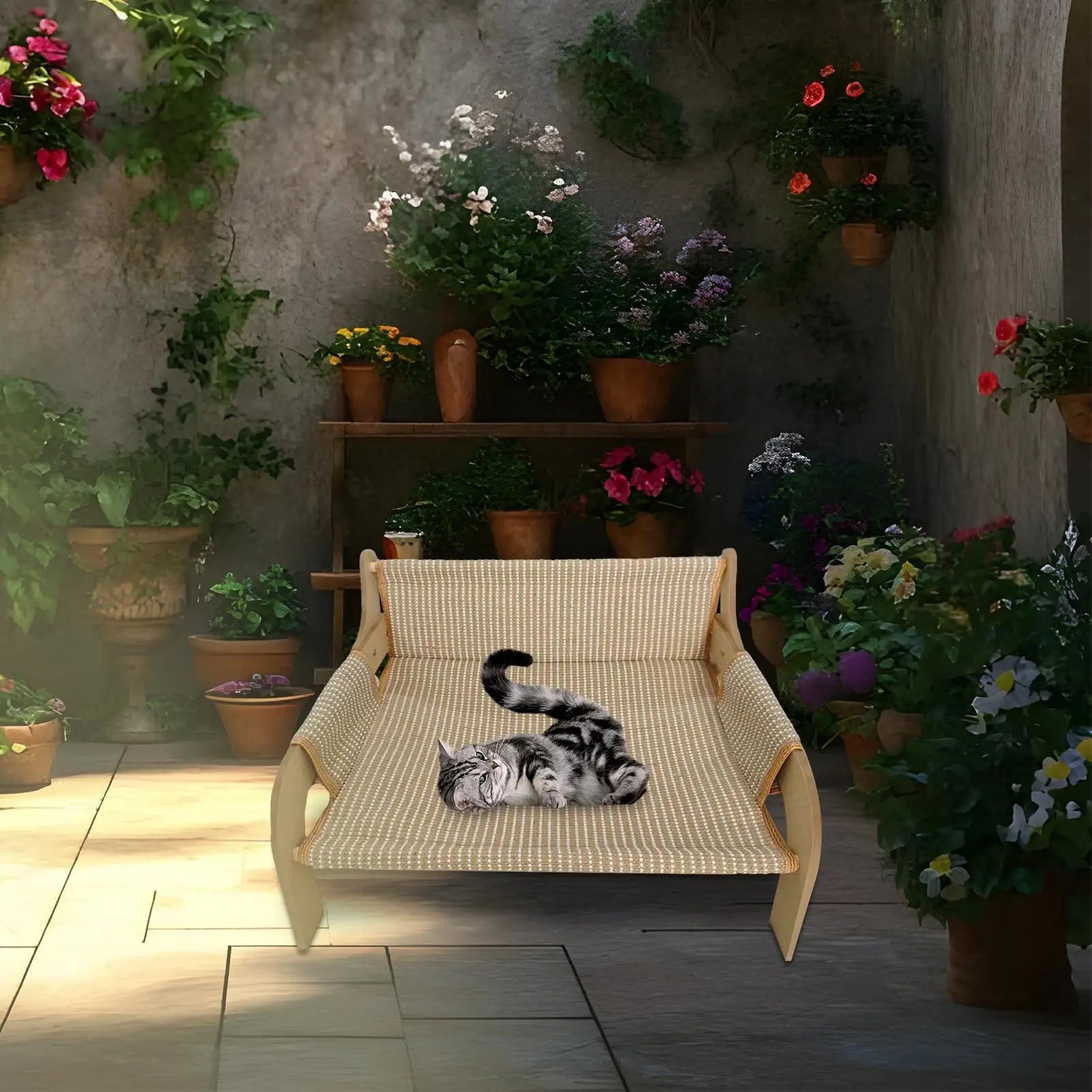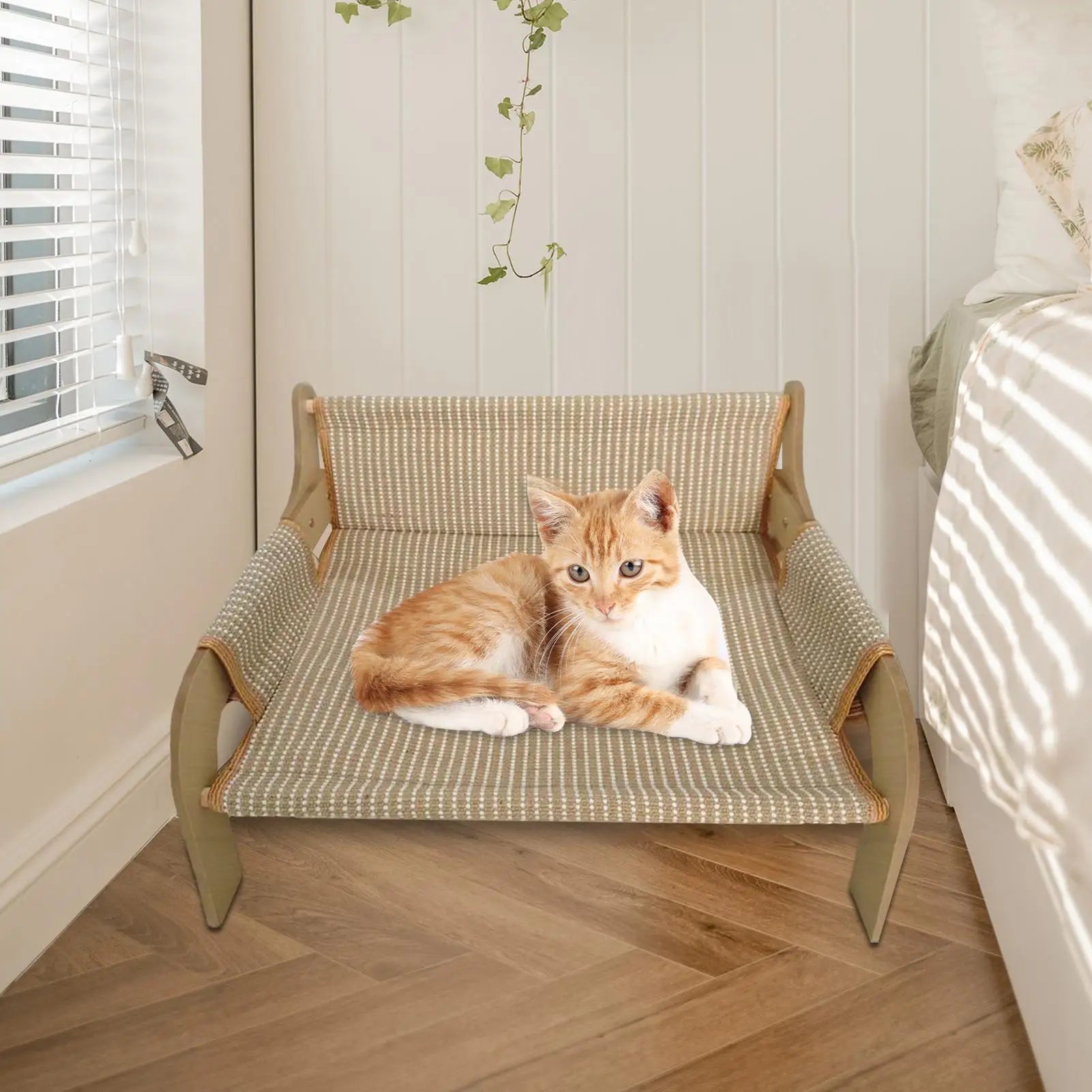 Give your pets a comfortable lounging spot with the Cat Hammock Bed, a breathable and raised pet furniture piece. Perfect for summer use, it helps regulate temperature, making it an excellent choice for kittens, puppies, and small dogs. This versatile lounge chair-style bed is suitable for indoor spaces such as bedrooms and living rooms or even outdoor setups. Designed to meet pets' sleeping needs, it blends seamlessly into your home decor while offering a cozy resting place for your beloved animals.