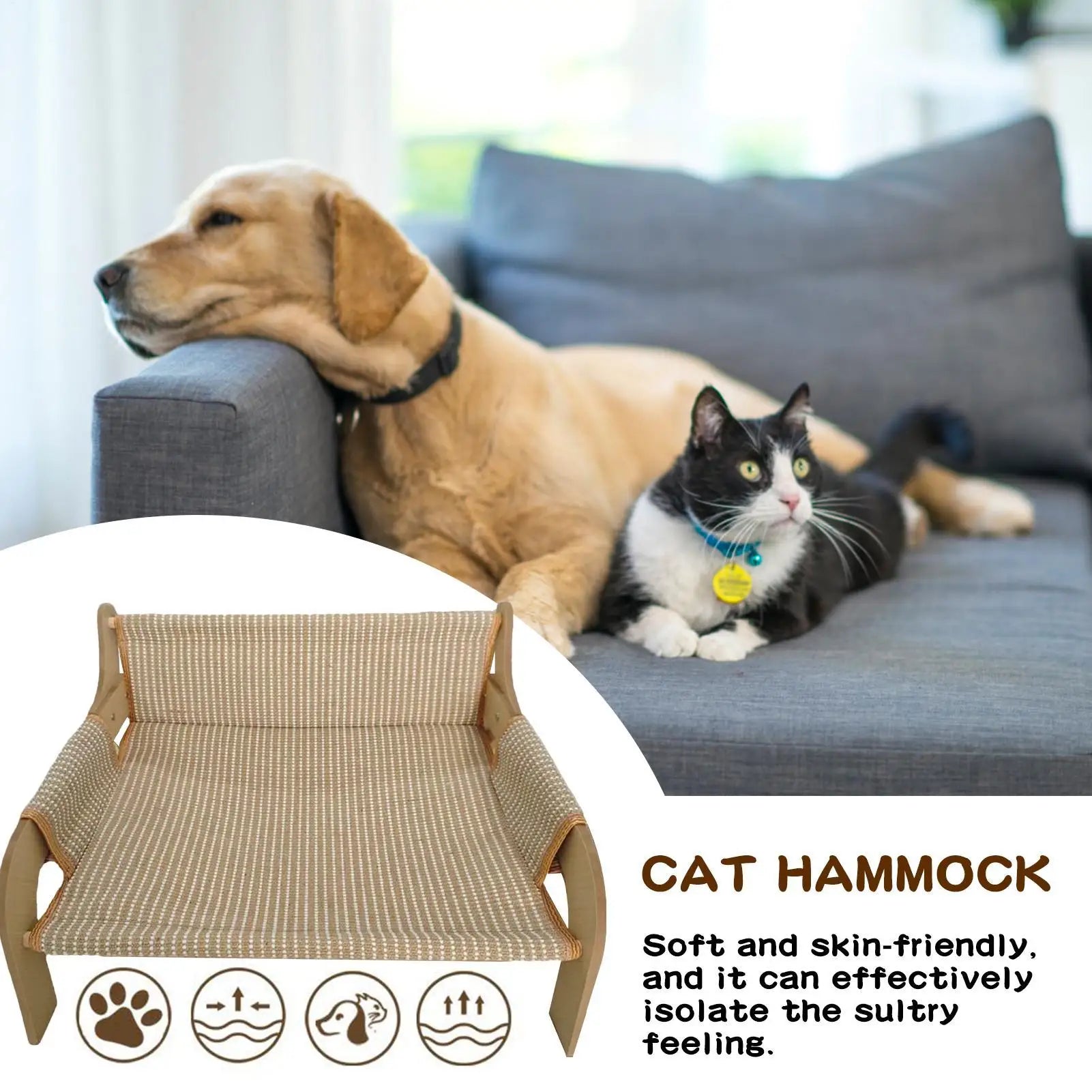 1.All-Season Comfort Design: Engineered for stability, the hammock bed combines skin-friendly fabric and breathability to create a cozy resting spot adaptable to every season2.Enhanced Airflow System: Designed with a concentration on summer comfort, the hammock-style bed incorporates breathable holes and advanced 3D airflow technology to improve air circulation, ensuring pets stay cool and comfortable in warm conditions