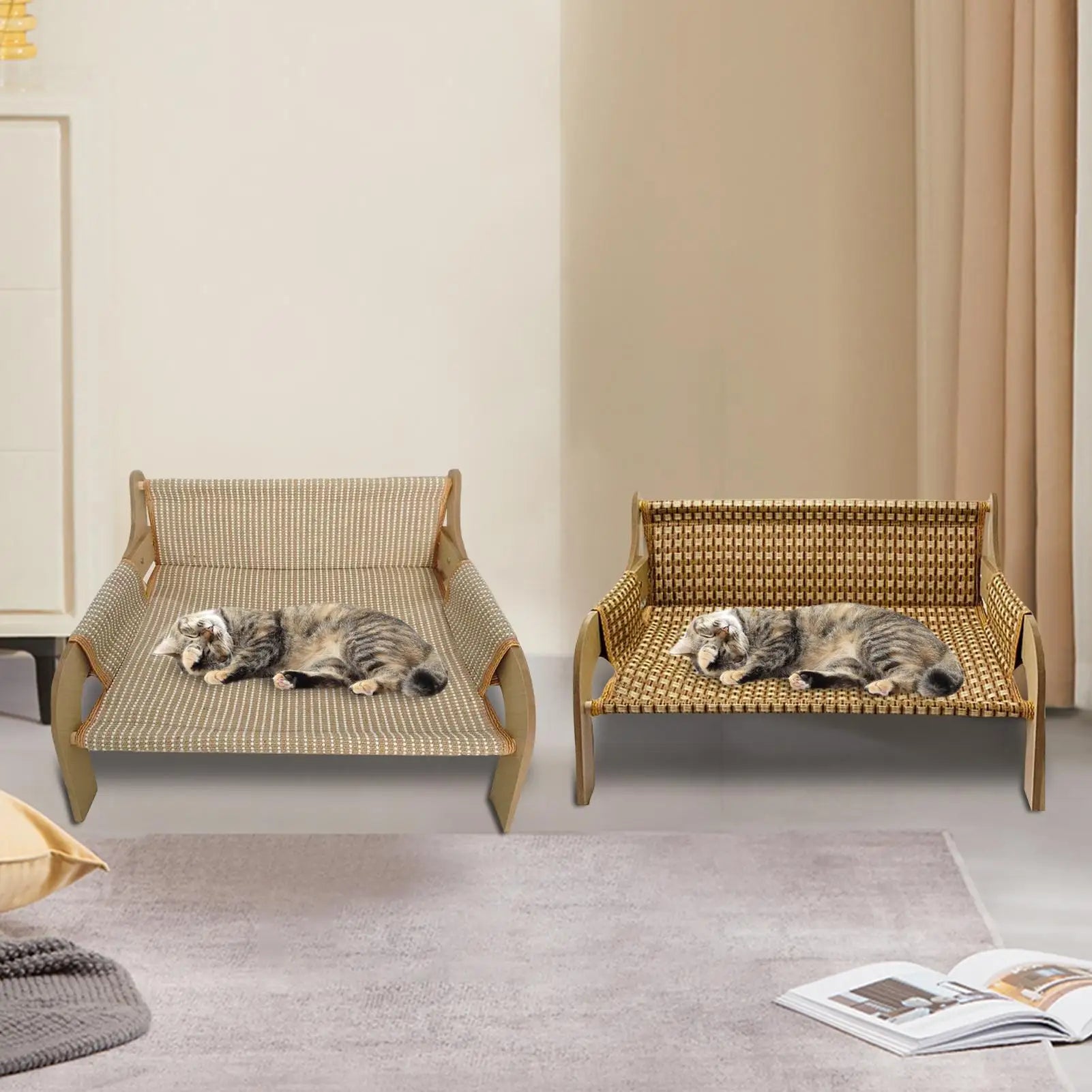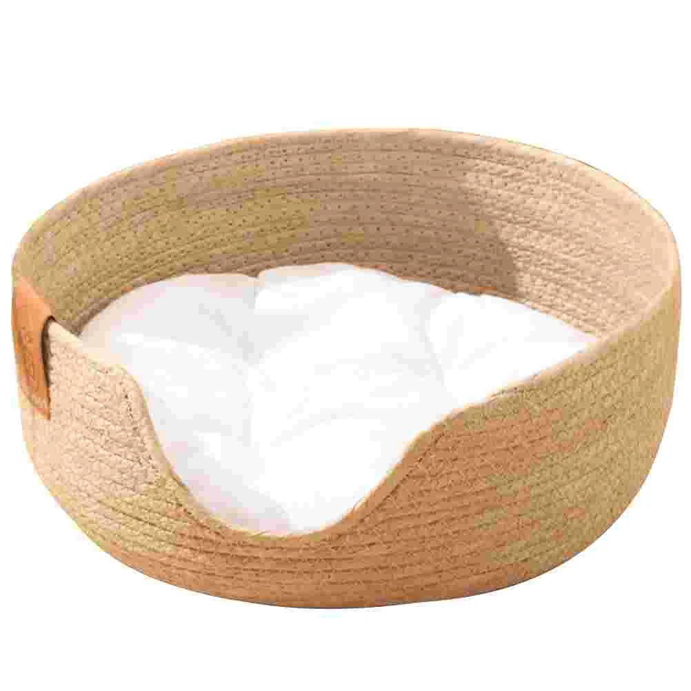 Cooling Woven Straw Summer Pet Nest Breathable Cat House Kitten Bed Small Dogs Comfortable Pet Sleeping Mat Cotton Pad Included