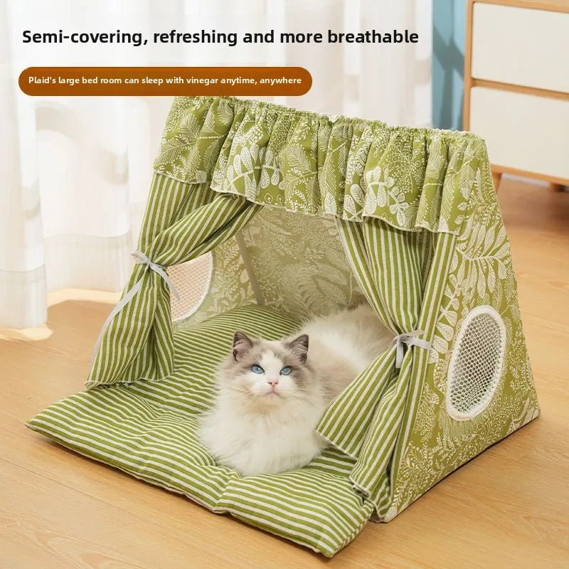 Pumpkin House Felt Cat Nest Fresh and Breathable Cat Bed Semi-enclosed Summer Pet Nest Practical Pet Furniture cat bed