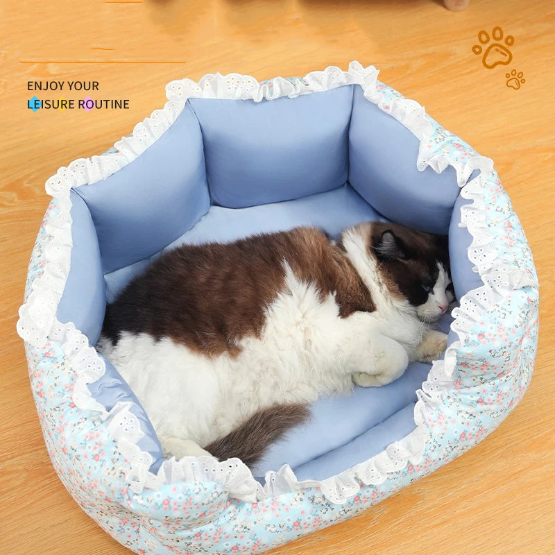 2024 Summer Pet Dog Bed Cat Bed Cat Mat Fragmented flowers Dog Mat Cotton Nest Dog house Puppy Sofa Bed Dog Beds for Medium Dogs